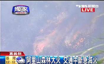中新网1月12日电 据台湾TVBS 报道,嘉义阿里山79公里处附近,今天上午发生火烧山。