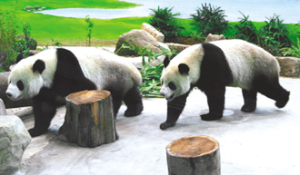 为这场地先前并未饲养过任何动物,属全新场馆,因此同意让团团、圆圆的活动空间从检疫室扩大至室内展场,让它们熟悉展场环境。