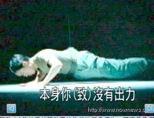 中新网1月21日电 据台湾“今日新闻”报道,陈水扁之子陈致中9年前为父亲助选拍的伏地挺身(俯卧撑)广告,其实是吊钢丝完成的,当年帮陈致中吊钢丝的师傅直接点明陈致中双手根本没有力,才要靠吊钢丝来辅助。