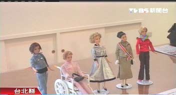 特色最不明显的是曾文惠,志工翻阅照片,端详许久,研究半天,最后以“高贵”为其主题,红色套装一上身,就有了架势,但和其它夫人芭比相较,还是逊了一点。