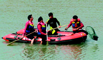 岸上围观民众担心它会淹死而目睹了一场不一样的抓猴记。警义消拿出网子朝小猕猴撒网,终将它“捞”上橡皮艇,“抓猴剧”半小时落幕。