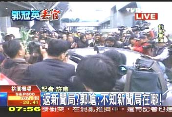 发表“辱台”争议言论的台当局前“新闻局”派驻加拿大多伦多官员郭冠英,31日上午6时多抵达桃园机场,出关时有二三十名黑衣男子包围他要护送他离开,但也有绿营在现场呛声,要求道歉。