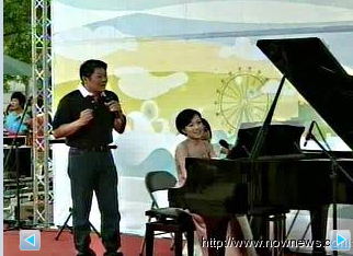 黄睿靓下午登台表演,一身粉红小礼服,表演30分钟11曲目,陈致中也陪同坐在台下欣赏。
