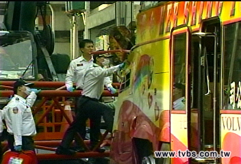 游览车上坐着25名旅客,他们来自广东东莞,来台进行6天旅游,今天进行到第5天行程,当时他们用完午餐打算前往101参观,没想到意外从天而降,游览车车体严重变形。游客李福庆当场死亡,王炳坤在送医途中不治,张世洸用叶克膜急救下目前已经有生命迹象,也受伤的王佩琳听到了堂哥王炳坤死讯,痛哭不已。