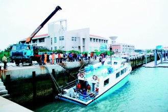 中新网4月27日电 据台湾《联合报》报道,澎湖县白沙乡交通船“白沙之星”26日傍晚驶进吉贝港时,航道疑因退潮缩小,左舷撞上导航灯基座扯掉螺旋浆轴心,船底破了大洞,船身下沉,35名乘客及船员在安检人员及近百吉贝村民协助下平安上岸。