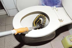 “谁会想到马桶里会躲着一条蛇?”这出宛如惊悚电影般的剧情,发生在五十岁的林男身上。他余悸犹存地说,八日傍晚坐马桶小解,一坐上去突感下体像被刀刺穿般的痛楚,反射本能地站了起来,只见鲜血不断滴落,裤档沾湿了一大片。