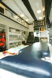 载送邵晓铃的加护型救护车,比一般救护车宽敞,还多了心脏电击器、血氧浓度分析仪、血压监测仪等。“中国附医”急诊室主任陈维恭说,加护型救护车载运重症病人,后座有医护人员,万一病人出状况,可以紧急应变。