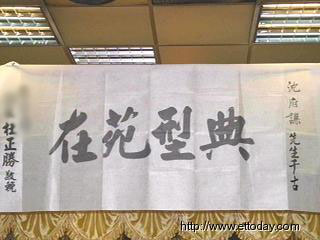 典型苑在 2006年2月 致赠已故教授沈谦挽联,题词“典型苑在”,为“典型宛在”之误。