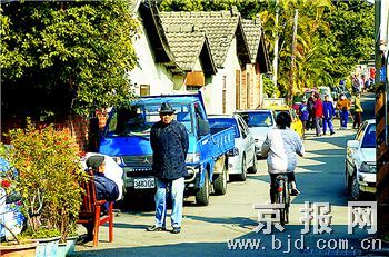 一条窄窄的巷弄,两旁整齐相对的红色大门,一条黄狗懒洋洋地卧在巷口。再往里走,只能容下一个人通过的巷弄前方,一位白发老人呆坐在暗巷里的家门口。几位老妈妈在屋檐荫凉下拉着家常……老门、老椅子、老灭火器、老狗……台湾正渐行渐远的眷村又迎来了2007年的春节。