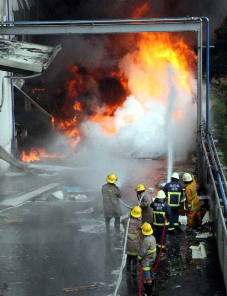 台一化工厂失火浓烟冲天 现场刺鼻气味强烈(图)(2)