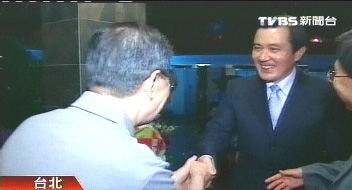 马英九伉俪提着水果篮探视大病初愈的萧万长,萧万长夫人朱俶贤在门口亲自迎接,而马英九看到萧万长第一句话是:“看起来不错嘛。”