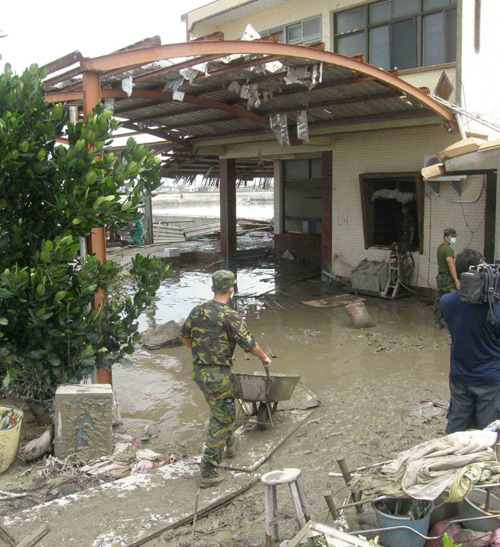 屏东佳冬、林边11日积水稍退,台军进入重灾区协助民众