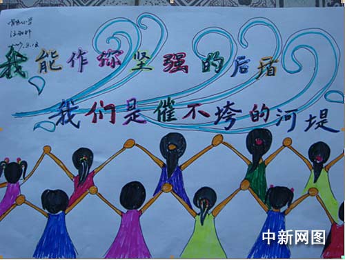中新网成都8月18日电 (霍潺) 台湾风灾牵动着两岸同胞的心,无论是大地震、还是风灾,在灾难面前,更显手足血浓于水的一脉亲情。来自四川地震灾区的孩子用稚嫩的双手绘制了一幅幅图画,写信鼓励海峡对面的亲人:“我能做你坚强的后盾,我们是摧不垮的河堤!”
