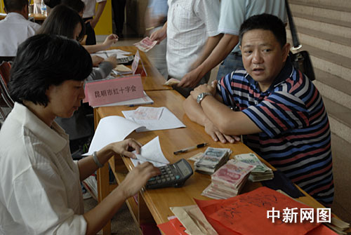 中新网昆明8月21日电(史广林)昆明市红十字会、昆明市慈善总会今日开始联合在全市范围内开展为台湾灾区募捐活动,仅一下午就收到捐款近19万元。