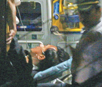 三名法警趋前检视阿扁的身体,有民众鼓噪“叫法警拿枪给扁自杀算了”;法警让扁躺在被告席长凳上,并紧急联系救护车。