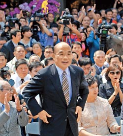昨日上午,苏贞昌选择大年初一就曾前去上香祈福的台北市保安宫,作为宣布投入选战的出发点。苏贞昌表示,“选赢就不会选二○一二”;但也强调,如果有一天他有更大能力,会用更大的贡献,来感激他最感激的台北县头家!