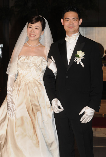 连胜武和空姐女友路永佳其实早在去年11月,就已在香港完婚,只是选在白色情人节补宴客。路永佳换穿两套名设计师陈季敏量身订作的礼服,其中之一是白纱露背礼服,搭配珍珠钻饰项链,显得清新典雅。而连胜武则是一身VERSACE西装,搭配BOSS银色系领带,看起来很帅气。