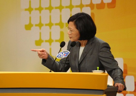蔡英文手指马英九咄咄逼人。(“中央社”图)