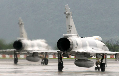 台军“汉光26号演习”27日在花莲空军基地举行,由于天候不佳,原排定幻象战机紧急起飞演练课目,被迫临时取消。图片来源:“中央社”