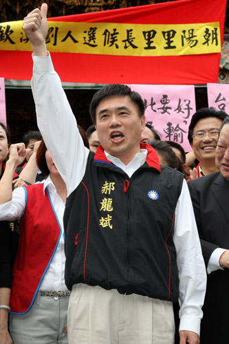 在获得国民党征召提名后,台北市长郝龙斌在蓝营台北市议员、市府局处首长陪同下,今日中午12时30分前往台北大龙峒保安宫上香祈福,并宣布正式参选寻求连任。