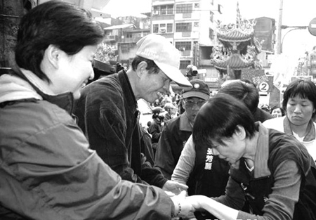 手、腰受了伤,咬咬牙或许还能坚持下来,但有时候选举是要拿命豁出去的。2006年底,台中市长胡志强偕夫人邵晓铃赴高雄为国民党籍市长候选人黄俊英造势,谁想返回台中时发生严重车祸,邵晓铃虽然最后闯过鬼门关,但左臂被截肢,脑部也伤得很厉害。而台湾政坛另一起轰动一时的车祸,当然要算1985年陈水扁妻子吴淑珍遭遇的车祸。当时陈水扁参选台南县长失利,在谢票过程途中,吴淑珍遭货车撞伤,导致下半身永久瘫痪,胸部以下丧失知觉。而“立委”选举中,候选人遭黑道上门要挟、收到子弹等事件也常有发生。