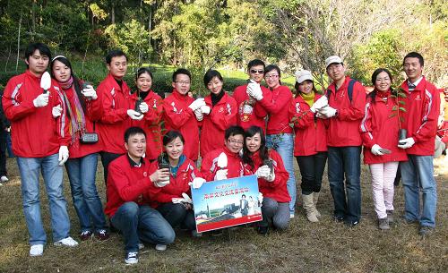 1月13日,来自海峡两岸的新人在台湾阿里山一起种下“喜愿树”。1月10日,来自大陆的26对新人搭乘两岸直航班机来到台湾,他们将于1月15日在日月潭参加“日月同喜,喜传天下”集体婚礼并游览台湾名胜古迹,感受台湾历史文化和风土人情。4对台湾新人也加入了此次活动。