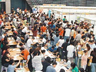 就业博览会9日在苗栗县巨蛋体育馆举行,涌入近四千谋职人潮,会场爆满。图片来源:台湾《联合报》