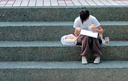 台湾文化大学教官宋忠平接受记者访问前5分钟,一名大一女生神色匆忙跑来找他,话未多说,伸手就递出休学申请书,泪水在眼眶中打转。该名学生表示,爸妈都失业了,家里还有老奶奶要养,她决定提早工作,帮忙赚钱。