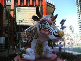 今年生肖牛年,搭配牛年,台北市文化局协办的“2009台北奔牛节、奔牛入市、放养 ”活动.由两只牛拼奏成一头奔跑的牛艺术,另外全世界最大的牛,长、高四米六、两米五,则现身在信义商圈,艺术家创作的主轴为平安牛,上头画满台湾传统的民俗图腾。国际文创执行长陈秉鸿表示,台北市是全世界第六十五个城市举办奔牛节活动,为了凸显台湾文化,台北奔牛节充满亚洲创意元素。