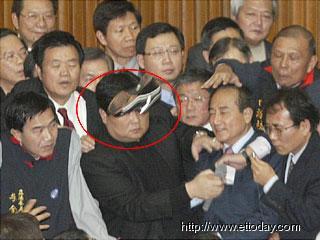 而这样闹完了吗?早得很啦。2007年台湾有“立委”改选,随后就是2008年“大选”,由于“立委”名额减半,蓝绿内部都争成一团。而“大选”,绿色的“四大天主”苏谢吕游,蓝色的两大人物马王,同样拳来脚往。执政民进党掌握的“中央选举委员会”准备搞“国民党党产公投绑大选”,国民党为了反制而要求选举委员采政党分配制。为了此案,“立法院”乱成一团,民进党“立委”甚至反锁“立法院长”王金平。议场内也打成一团,鞋子都成了武器,让全世界都看得目瞪口呆,叹为观止。