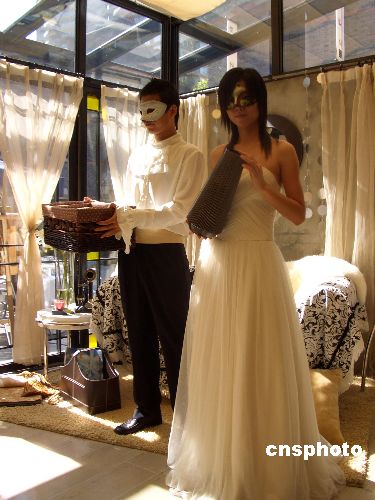 八月二十三日,上海台商企业首次举办“蒙面生活秀”,在上海“新天地”的醒目位置,向时尚人士展示今年秋冬季国际流行的家居用品。调查显示,台商制造的时尚家居用品,在上海的七成消费者为二十五岁至四十五岁的白领女性。中新社发 许晓青 摄
