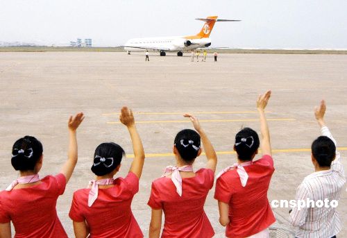 10月8日,一架台湾立荣航空包机从厦门飞往高雄。台湾立荣航空公司当天执飞厦门--高雄的往返航班,标志厦门航点两岸中秋包机圆满结束。2006年两岸中秋包机厦门航点由厦门航空公司和台湾立荣航空公司共同承担执飞任务,厦航和立荣各执飞4个架次班机,共运送往返旅客900多人次。中新社发 丰晓飞 摄