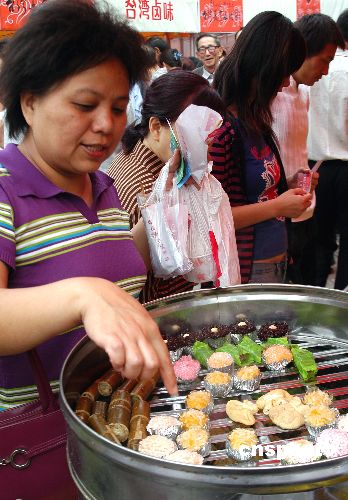 2006年10月10日,“神州飘香——台湾美食节”在武汉市武昌首义园开幕。“神州飘香——台湾美食节”是湖北武汉台湾周活动的一部分,百余种台湾风味小吃和水菓、茶叶、高粱酒等让武汉市民一饱口福。中新社发 楚天行 摄