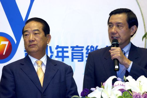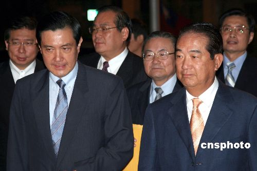 10月14日晚8时,中国国民党主席马英九和亲民党主席宋楚瑜在台北青少年育乐中心会面,就当前台湾政局问题交换意见。中新社发 黄少华 摄