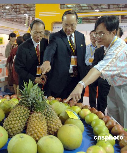 “海峡两岸农业成果展览暨项目推介会”19日在厦门举行。图为台湾高雄县展台上的水果大拼盘。中新社发 郑祚声 摄