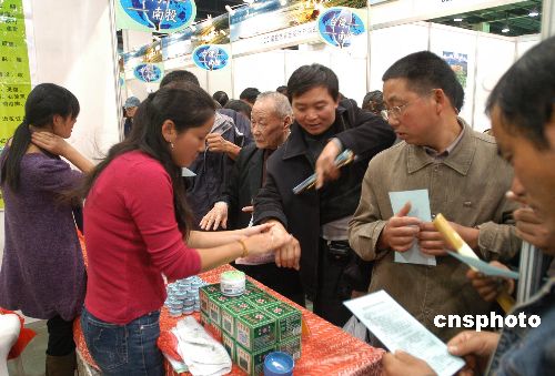 11月23日,台湾展馆前十分热闹。以“特色、文化、竞争力”为主题的2006浙江农业博览会于当天在杭州和平国际会展中心举行。在农博会上来自台湾的农产品深受杭州市民青睐。中新社发 宋健浩 摄