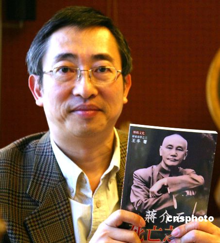 台湾知名传记作家、蒋氏家族传记权威王丰十一月二十三日在台北推出新书《蒋介石死亡之谜》,揭开蒋介石死亡的另一种原因。书中介绍,由于在治疗中,宋美龄救夫心切,坚持肺部穿刺,最终误诊导致蒋介石死亡。图为该书作者王丰。中新社发 徐长安 摄