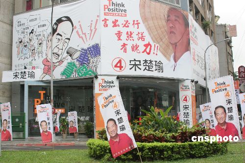 随着十二月九日台北市长选举日的临近,各位市长候选人的文宣活动升温。图为参选台北市长的宋楚瑜所作的文宣广告。中新社发 耿军 摄