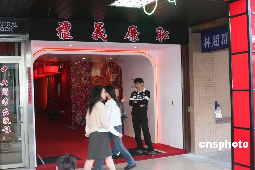 由施明德发起组织的“倒扁红衫军”于十一月二十九日撤离台北火车站前广场,他们在露天举办倒扁活动八十一天后,将移入距陈水扁办公室仅百米的重庆南路一段的这间店铺。中新社发 耿军 摄