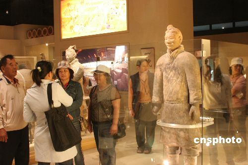 兵马俑特展十二月一日在台中市自然科学博物馆开幕。包括绿色跪射俑在内的一百一十六组件珍贵文物将在此展出四个月。中新社发 耿军 摄