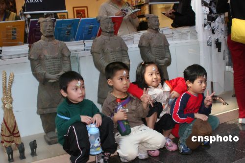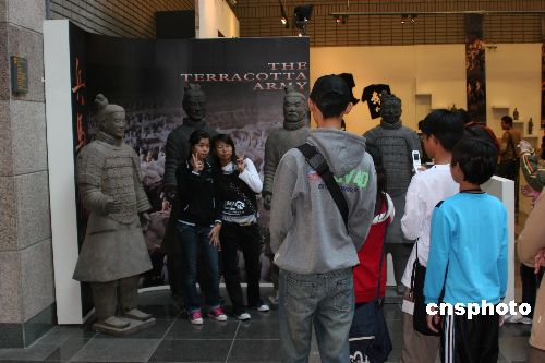 “兵马俑特展”日前在台中市的台湾自然科学博物馆开幕后,吸引了许多台湾中小学生前来参观。中新社发 耿军 摄