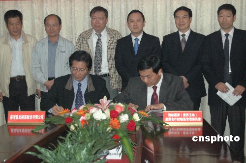 十二月十五日晚,广西玉林海峡两岸农业合作实验区管委会和台湾农友种苗股份有限公司成功签约。台湾农友公司将在实验区投资建设台湾农业新品种示范基地,规划面积一百亩,首期将引进台湾农业新品种一百个。这是实验区自今年八月份挂牌成立以来,第一家签约的台湾农业企业。中新社发 蒋雪林 摄
