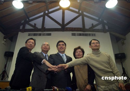 十二月十八日下午,刚刚当选台北市市长的郝龙斌与他的市政团队主要人选,首度在媒体面前公开亮相。中新社发 张炜 摄