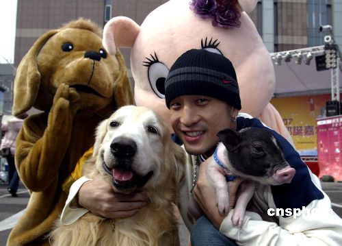 十二月二十二日,台北第二届宠物嘉年华开始举行。随着农历“猪年”的临近,在宠物狗唱主角的嘉年华上,宠物猪也来凑热闹,猪狗相遇,和睦相处。中新社发 张炜 摄