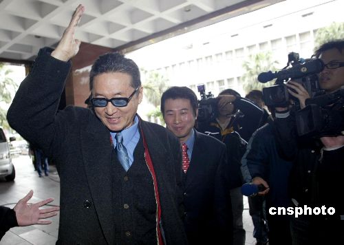 十二月二十二日上午,刚刚参加了台北市長选举的岛内著名人士李敖在律师陪同下来到台北地方法院地检署,控告台北市选委会违法扣押他的二百万新台币的保证金。中新社发 张炜 摄