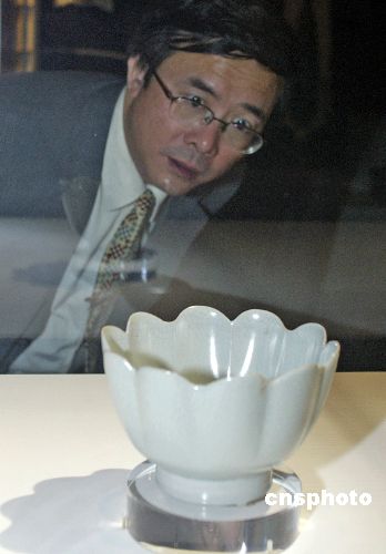 十二月二十五日,百年难遇的世纪大展“大观——北宋书画、汝窑、宋版图书特展”在台北故宫博物院正式开幕。据介绍,该特展筹备期长达三年,终于将一批宋代稀世珍宝展现在公众面前。图为一件全世界绝无仅有的北宋汝窑青瓷莲花碗吸引观众。北宋汝窑瓷器被誉为青瓷之冠,传世极少,目前全世界典藏不足七十件,而台北故宫博物院就收藏了二十一件,堪称世界之最。中新社发 张炜 摄