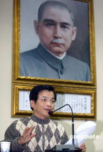 新年元旦,国民党籍“立委”苏起、赖士葆在国民党中央党部举行记者会,回应陈水扁当天上午所发表的“元旦文告”。中新社发 张炜 摄