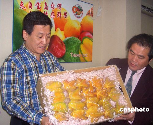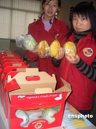 一月五日,沪上最大规模的台湾水果贸易公司宣布,台湾水果在大陆长三角地区的春节销售正式启动。据悉,农历春节前后共有约一百五十吨台湾水果将陆续供应上海地区,其中包括堪称台湾“水果之王”的超级黑金刚莲雾。中新社发 许晓青 摄