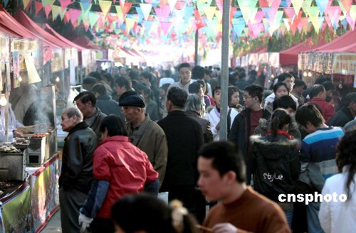 一月三十日,海峡两岸美食文化展在侨乡泉州举行。八十个美食展位展现包括宝岛台湾的民族、民俗、民风,吸引当地市民前往品尝和购买。中新社发 傅丹丹 摄