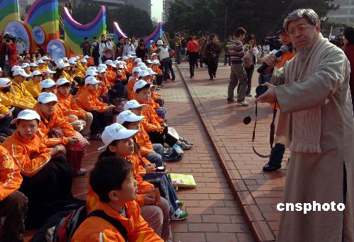 1月31日,参加“2007·阳光海峡——两岸快乐小天使活动营”系列活动的闽台少年儿童,在福州同诵《三字经》。中新社发 刘可耕 摄